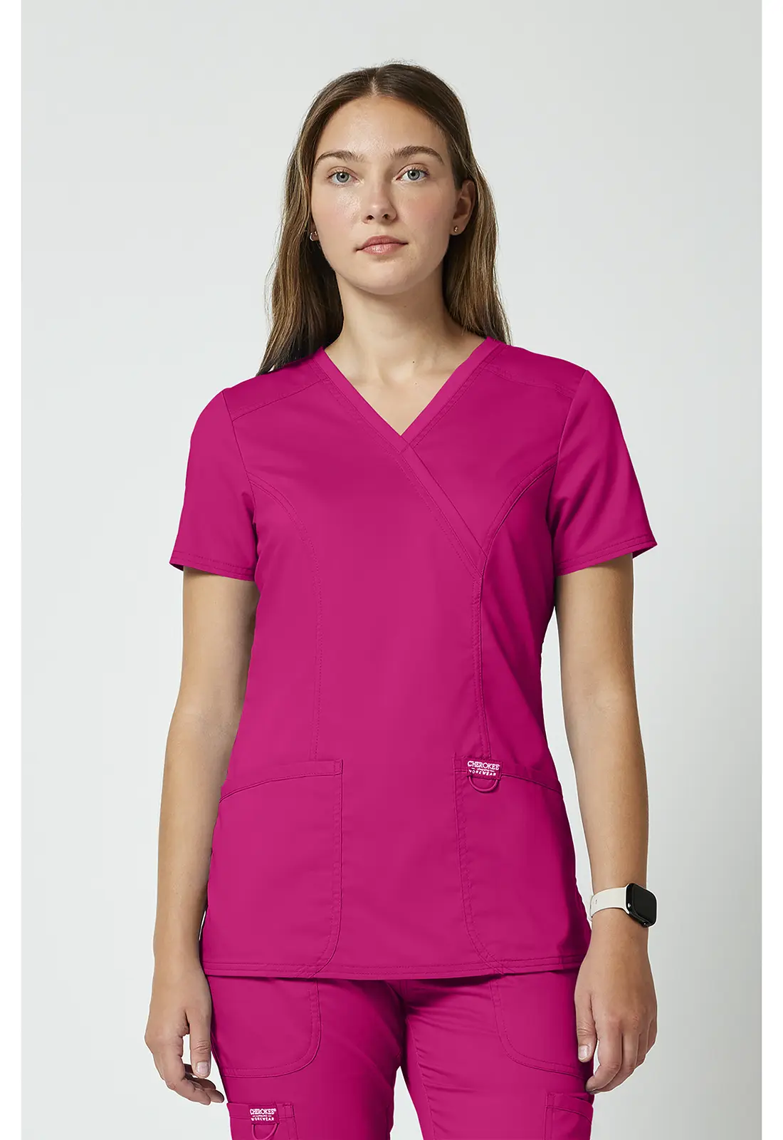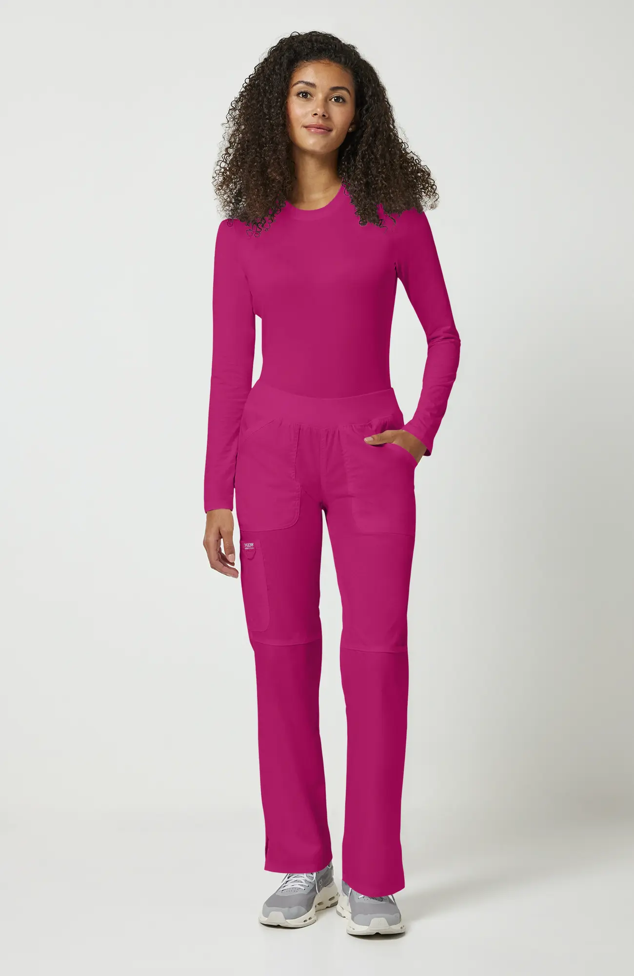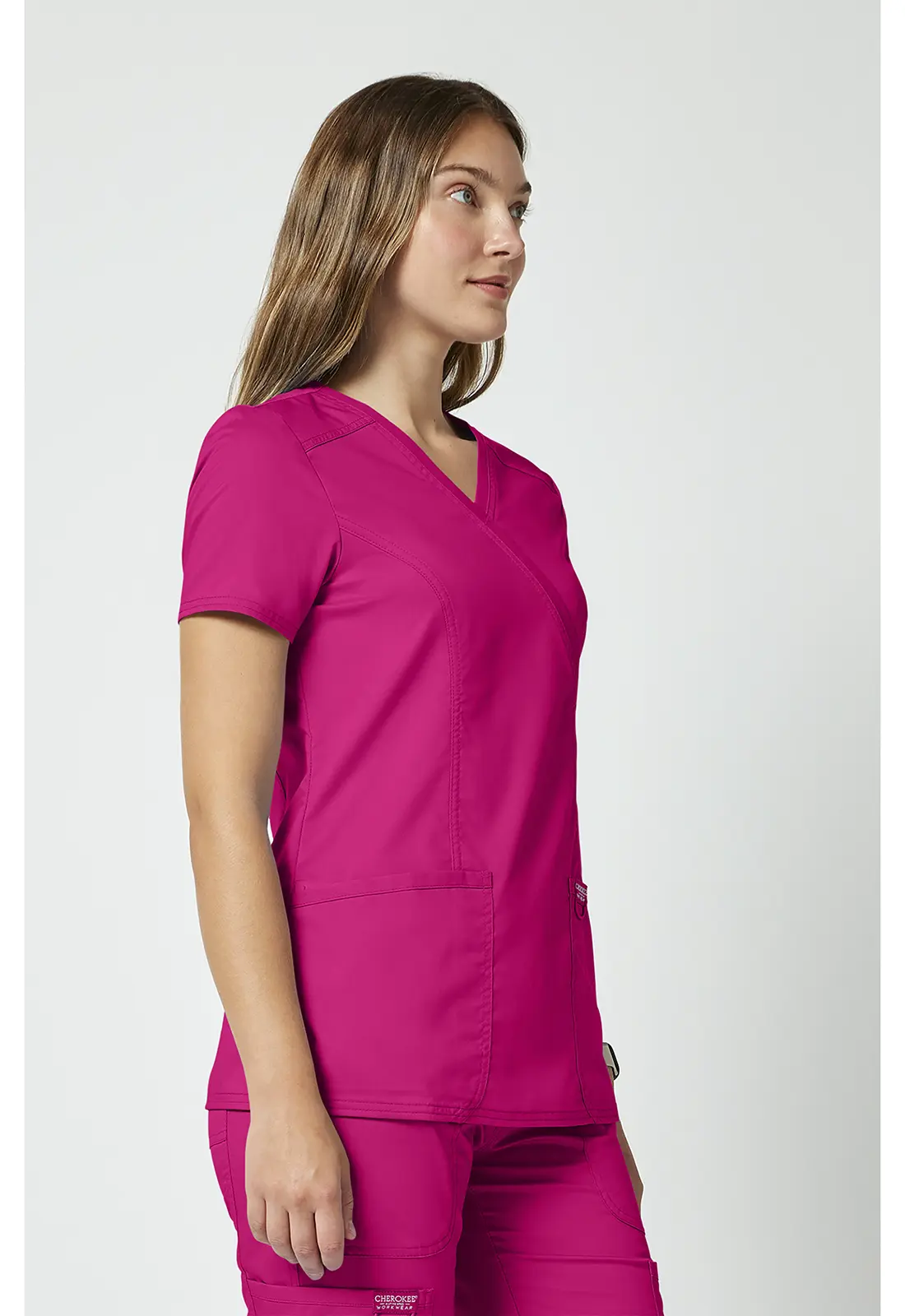 Komplet Cherokee Revolution WWE610 + WWE110 HTPK to energetyczny zestaw medyczny w kolorze fuksji, który łączy profesjonalny wygląd z wygodą pracy.