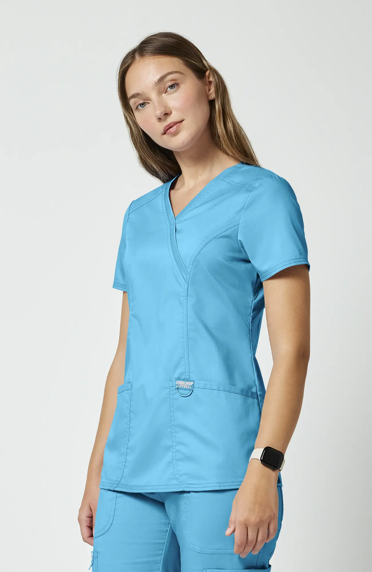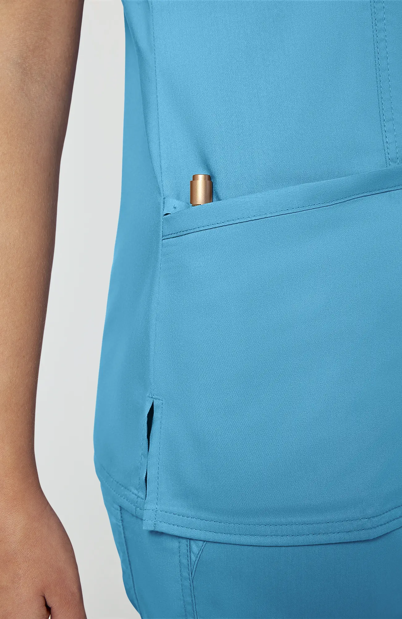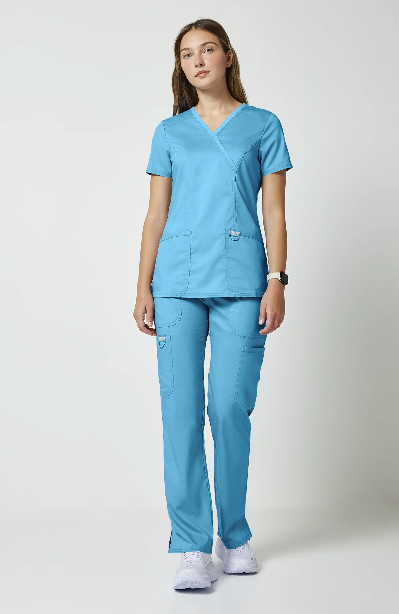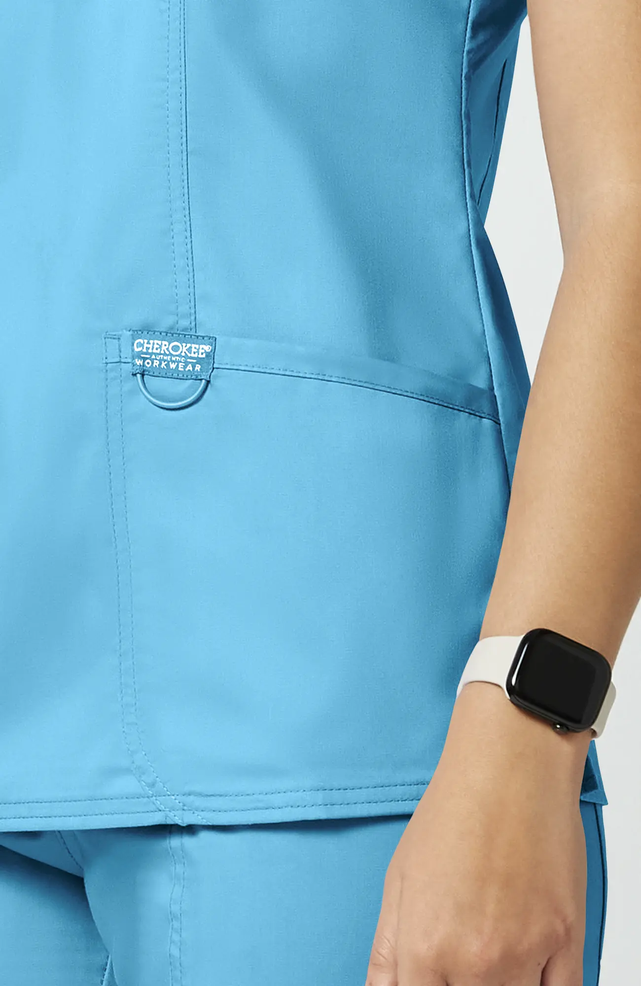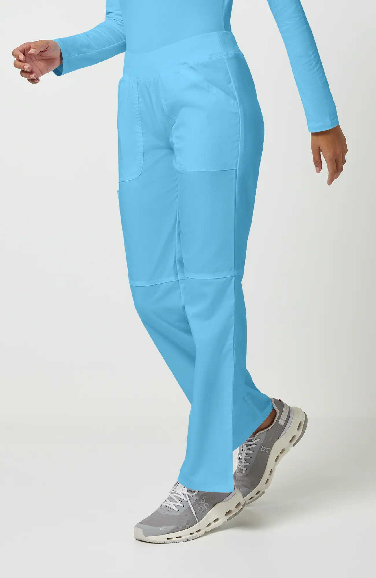 Turkusowy błękit nie przytłacza, nie wygląda ciężko i nie buduje dystansu. Dzięki temu pracujesz swobodniej i czujesz się bardziej naturalnie w kontakcie z pacjentem.