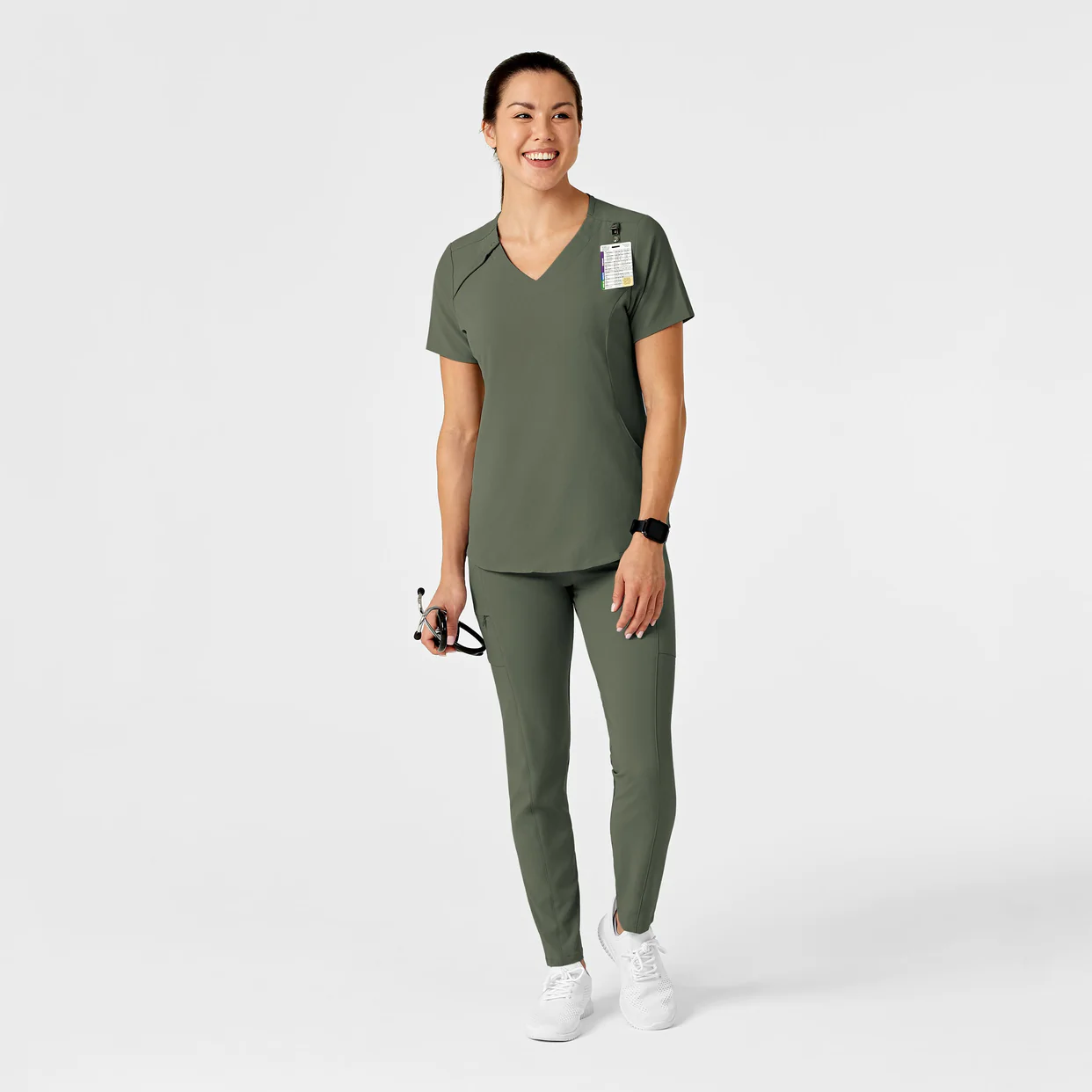 - Perfekcyjne dopasowanie: spandex zapewnia elastyczność i swobodę ruchu przez cały dyżur.
