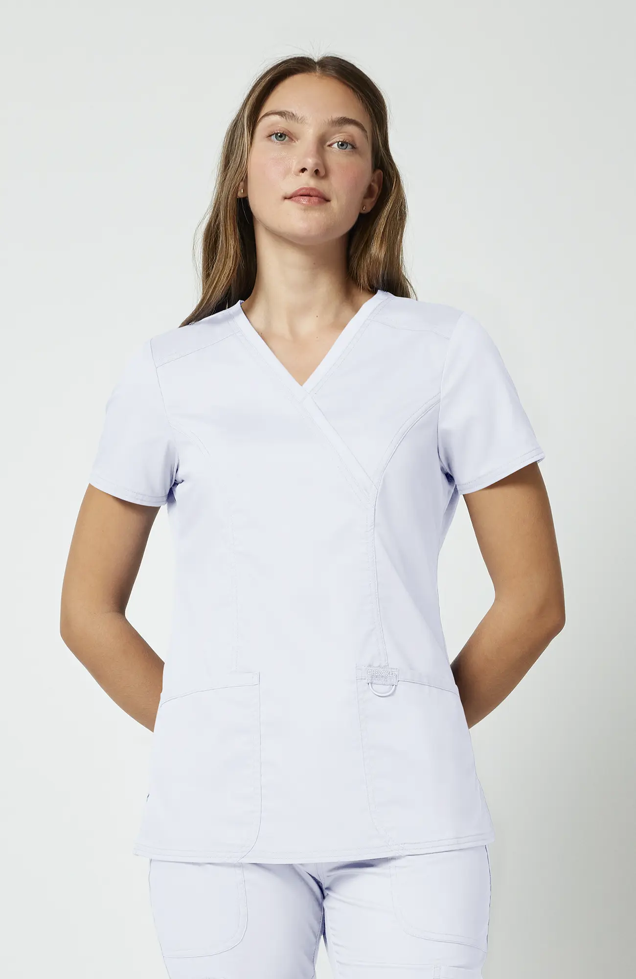 Model WWE610_WHITE należy do linii Cherokee Workwear Revolution, która została zaprojektowana z myślą o intensywnym użytkowaniu. Bluza posiada kopertowy dekolt, krój Modern Classic, a także praktyczne kieszenie i boczne rozcięcia. W efekcie łączy estetykę z funkcjonalnością, dlatego dobrze sprawdza się w gabinecie, klinice, przychodni, szpitalu, stomatologii, weterynarii, fizjoterapii oraz branży beauty.
