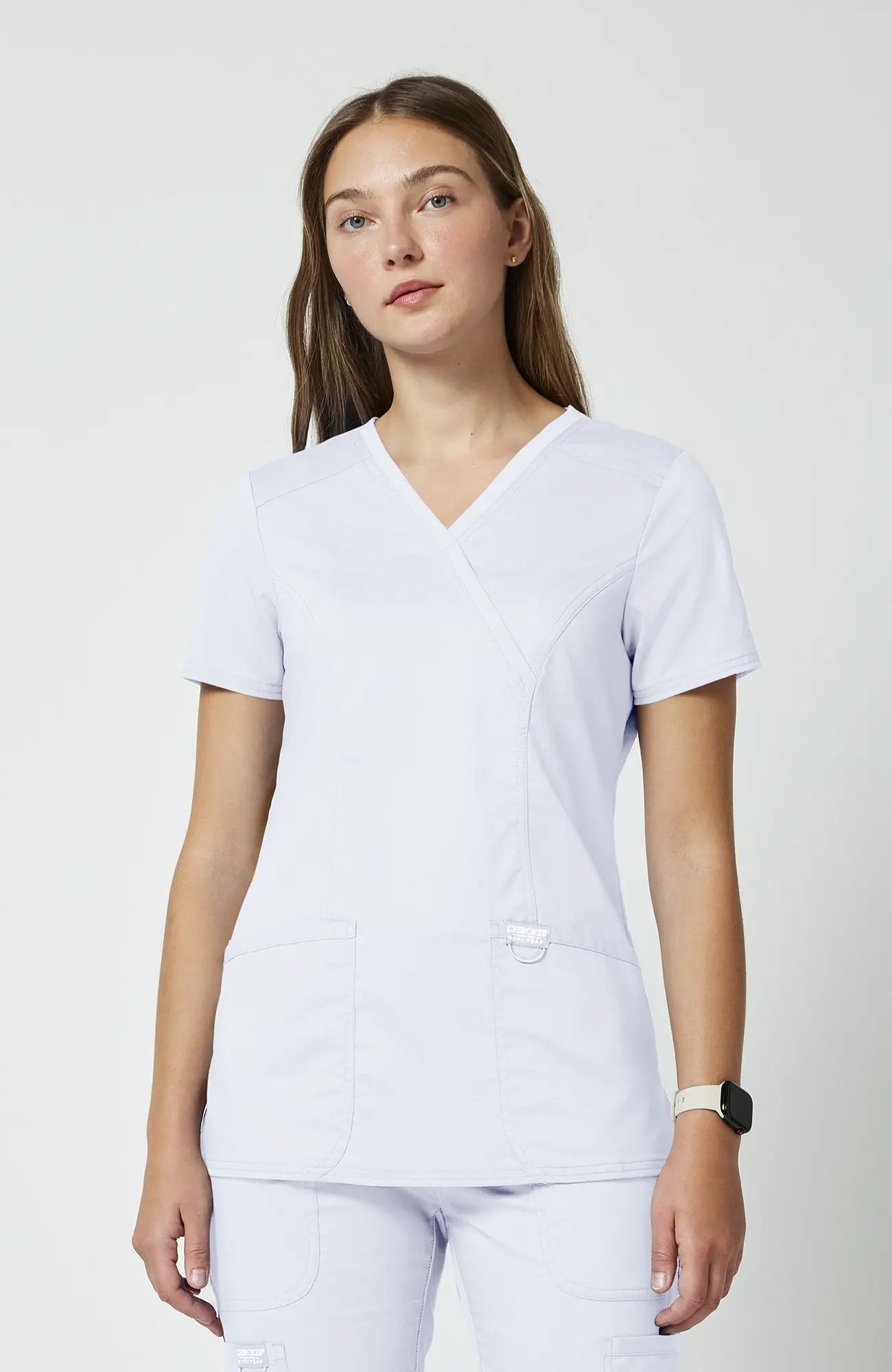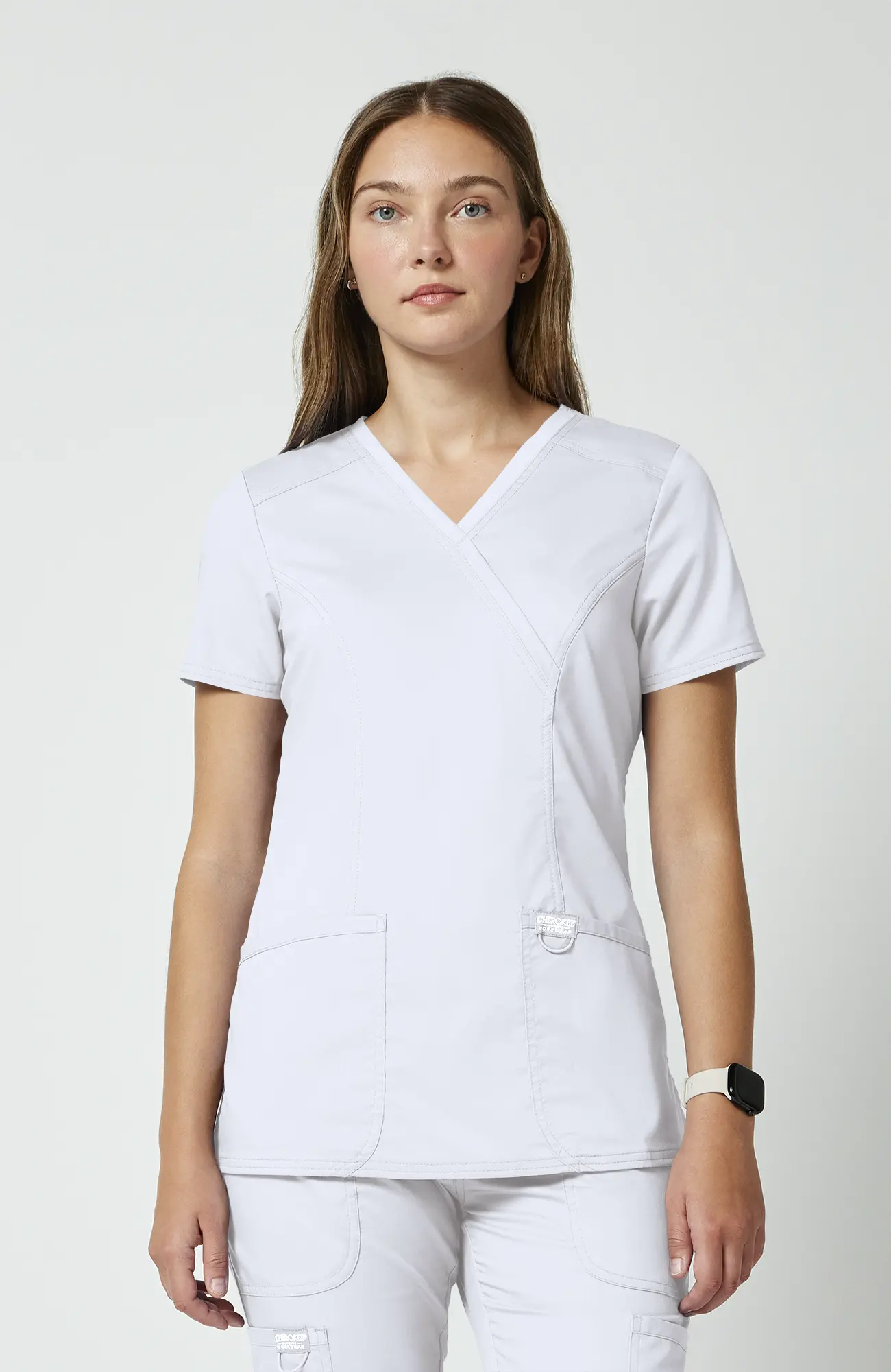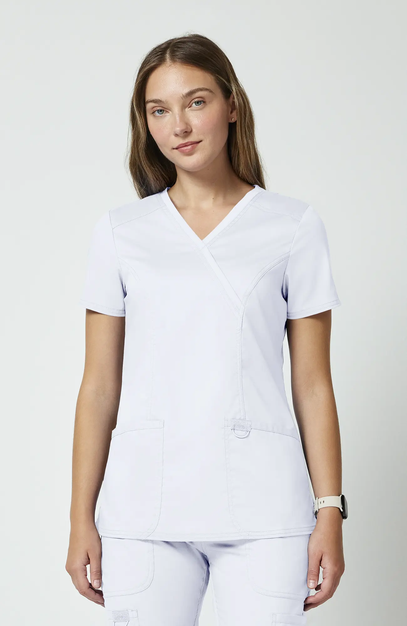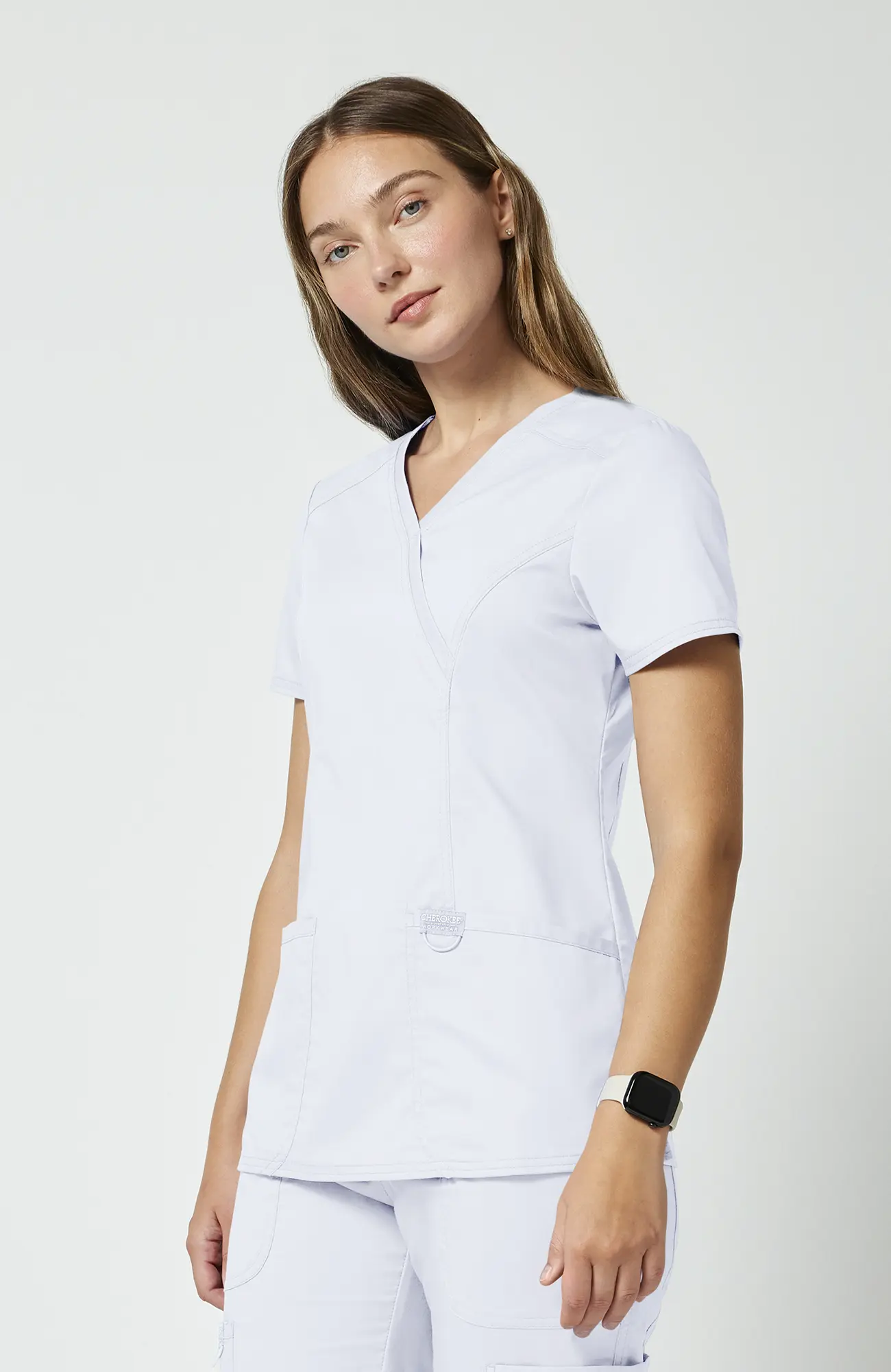 Cherokee Workwear Revolution WWE610_WHITE to damska bluza medyczna w kolorze białym, który od lat pozostaje symbolem czystości, higieny oraz profesjonalizmu w branży medycznej. Co ważne, jest to kolor, który nie tylko dobrze wygląda, ale także buduje zaufanie już od pierwszego kontaktu z pacjentem. Dzięki temu sprawdza się zarówno w codziennej pracy, jak i w sytuacjach, gdzie liczy się pierwsze wrażenie.
