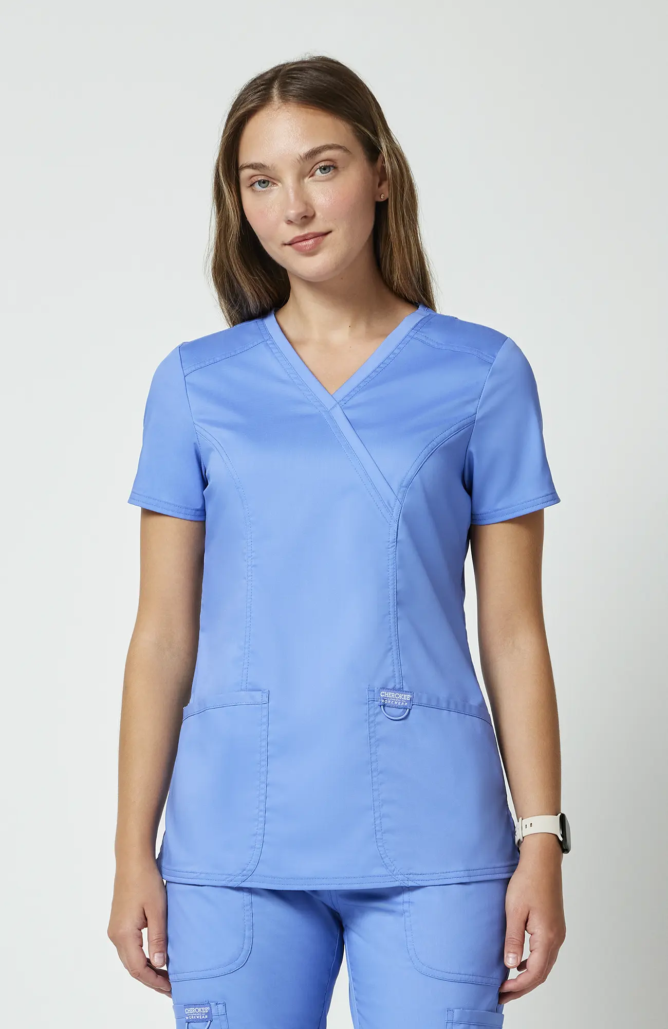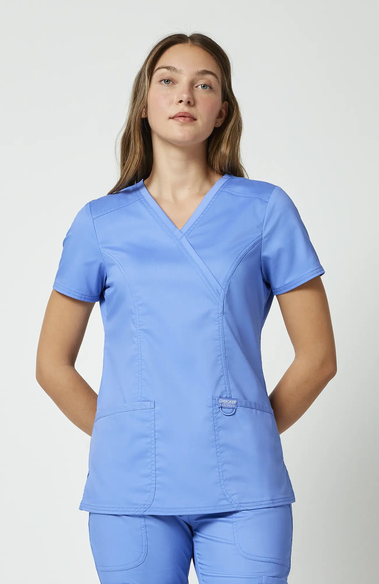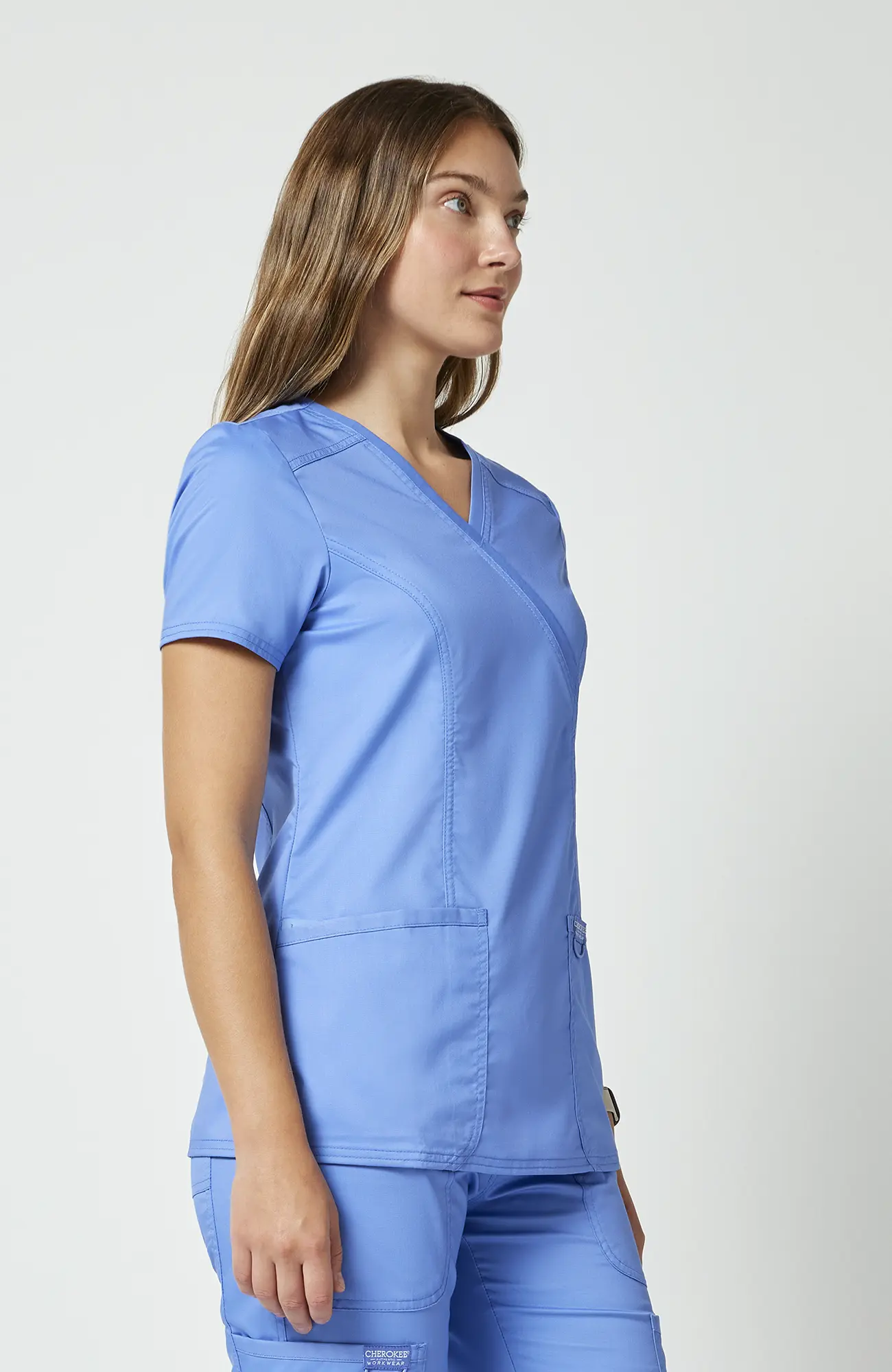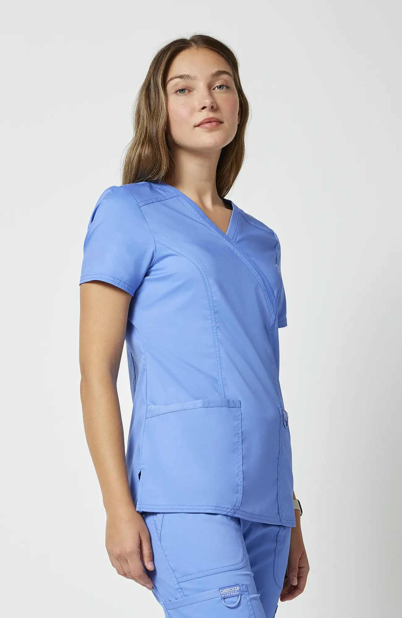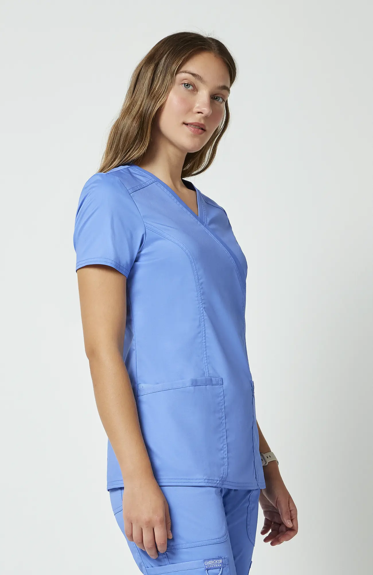 Model WWE610_CEIL należy do linii Cherokee Workwear Revolution, zaprojektowanej z myślą o codziennym użytkowaniu. Bluza posiada kopertowy dekolt, krój Modern Classic, funkcjonalne kieszenie oraz boczne rozcięcia. Dzięki temu łączy wygodę z estetyką, co sprawia, że dobrze sprawdza się w gabinecie, klinice, przychodni, szpitalu, stomatologii, weterynarii, fizjoterapii oraz branży beauty.