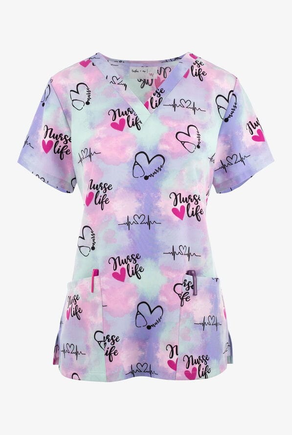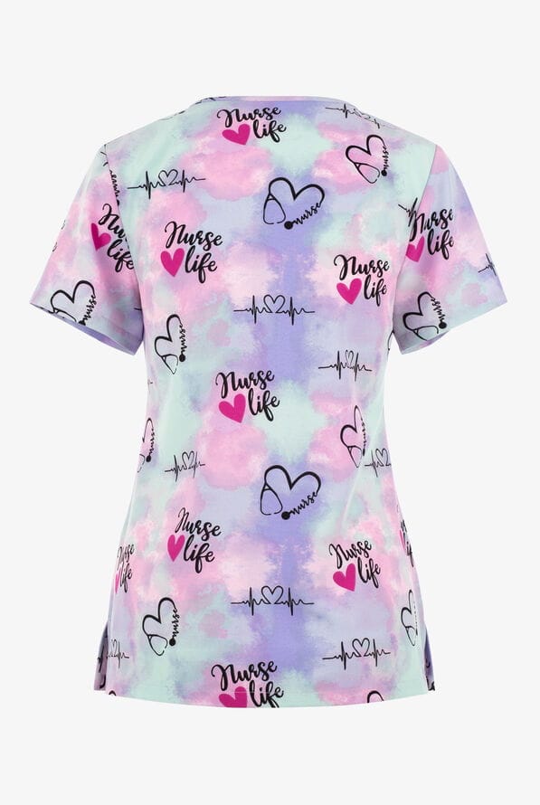 Bluza medyczna damska scrubs z napisami — „Nurse Love, Nurse Life” (softstretch, krótki rękaw)