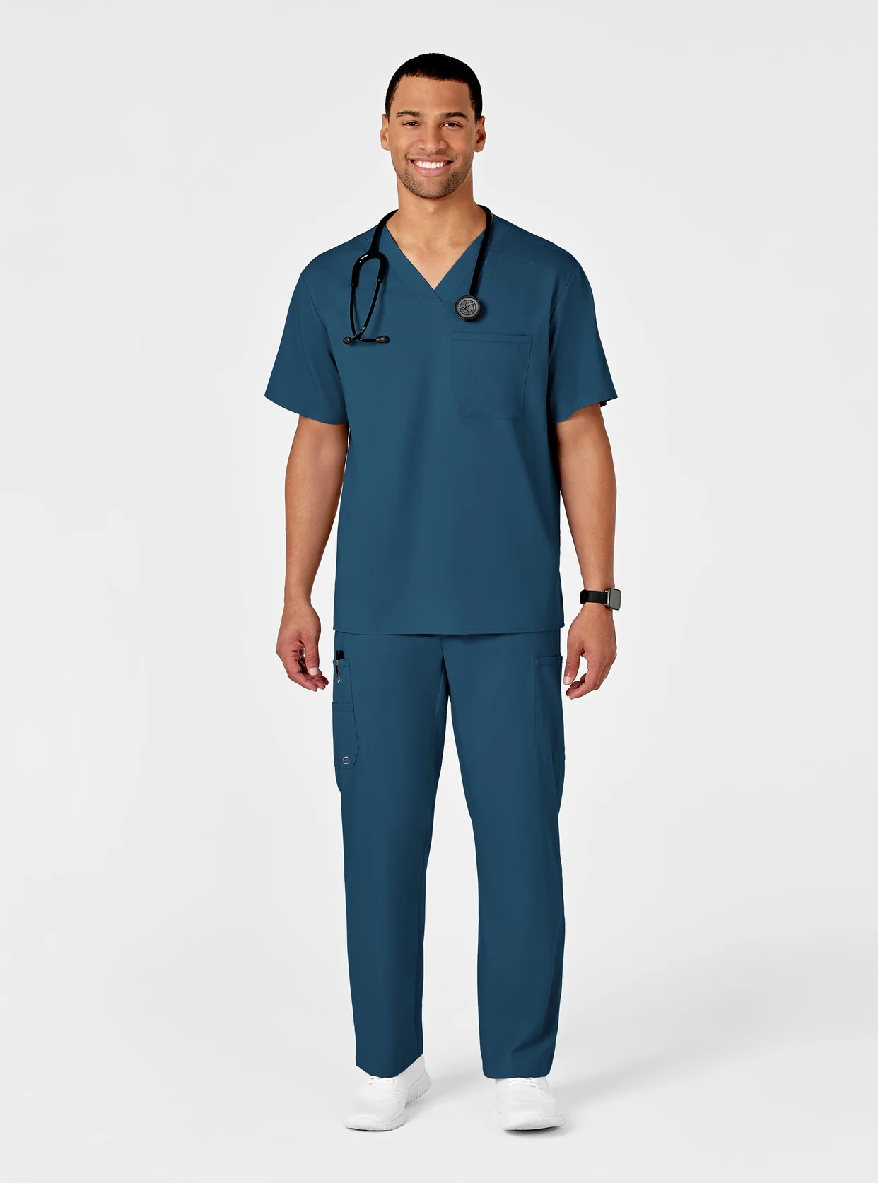 Spodnie medyczne PRO doskonale sprawdzą się dla personelu w szpitalach, przychodniach czy innych placówkach medycznych. Zapewniają maksymalny komfort nawet przez wiele długich godzin w pracy. Spodnie medyczne męskie są wykonane z połączenia sztucznego jedwabiu z poliestrem i ze spandex-em. Nie gniotą się, szybko wysychają, dzięki spandexowi dopasowują sie idealnie do sylwetki. Mają prosty „bojówkowy” krój. Są niezwykle estetyczne. Dzięki temu dopasowują się do sylwetki i gwarantują swobodę ruchów podczas pracy. Spodnie medyczne męskie są także zaprojektowane z myślą o intensywnych obowiązkach. Dolne otwory wentylacyjne gwarantują swobodny przepływ powietrza, co dodatkowo wpływa na wygodę. Spodnie medyczne męskie z kieszeniami to praktyczne rozwiązanie. Bezpiecznie można przecchować w nich podstawowy sprzęt medyczny, długopis, a nawet telefon komórkowy. Z łatwością dopasujemy spodnie do bluzy i stworzysz estetyczny zestaw dla personelu. Spodnie posiadają gumkę z tyłu pasa, z przodu dodatkową regulację w postaci troczka. Dwie głębokie kieszenie ukośne poniżej linii pasa, a także dwie kieszenie cargo na udach, są niezwykle funkcjonalne.