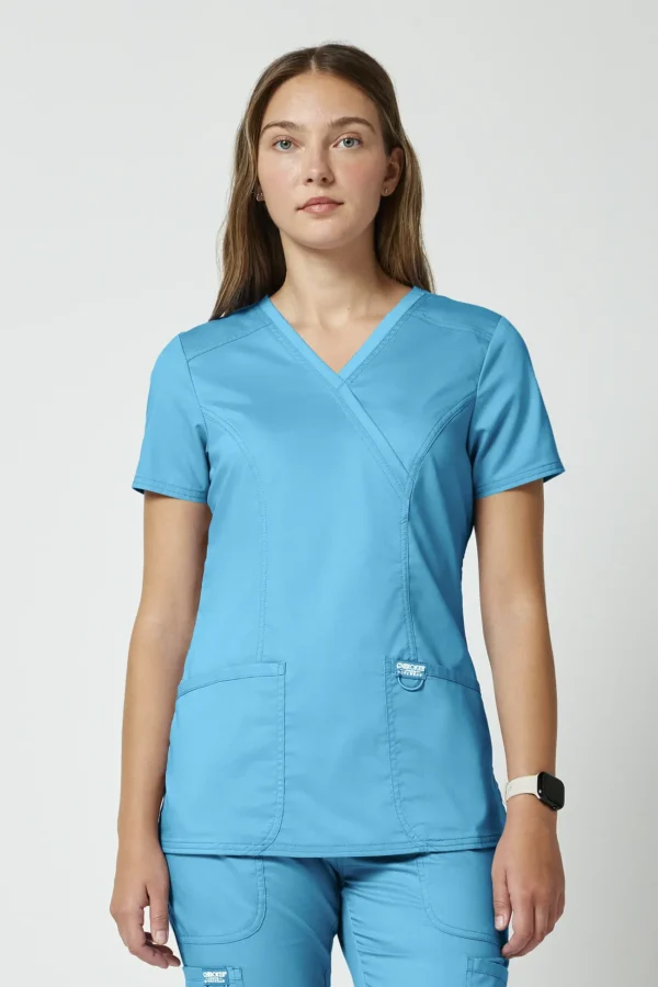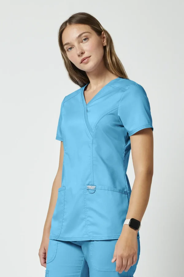 139,00 złPierwotna cena wynosiła: 139,00 zł.109,00 złAktualna cena wynosi: 109,00 zł. Dodaj do koszyka Ten produkt ma wiele wariantów. Opcje można wybrać na stronie produktuCherokee Revolution WWE610_CEIL to damska bluza medyczna w kolorze błękitu gołębiego, który zapewnia lekki i profesjonalny wygląd. Kopertowy dekolt i elastyczny materiał gwarantują wygodę podczas pracy.